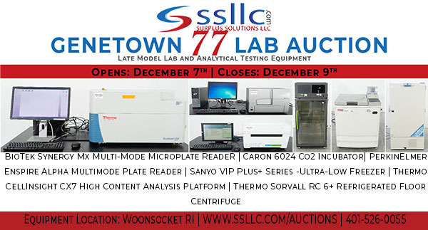 SSLLC's Genetown 77 Online Lab Auction! Great Used Lab Equipment Up For Bid!